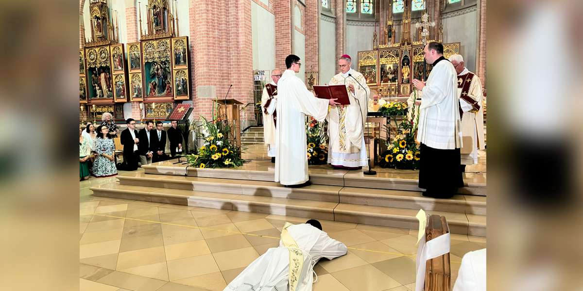 El arzobispo Georg Gänswein le confirió el sacramento de la ordenación sacerdotal. En su sermón, recordó la tarea original del sacerdote: llevar a Dios mismo al pueblo. Si esto ya no sucede y "Dios desaparece, desaparece el hombre" (Papa Benedicto XVI). El lugar del anuncio no es el escritorio, sino la cruz de Cristo. Sólo partiendo desde allí, el trabajo del sacerdote será fecundo. Quien quiera eliminar el sufrimiento debe eliminar primero el amor. "Porque el amor", según el arzobispo, "incluye la transformación del sufrimiento".